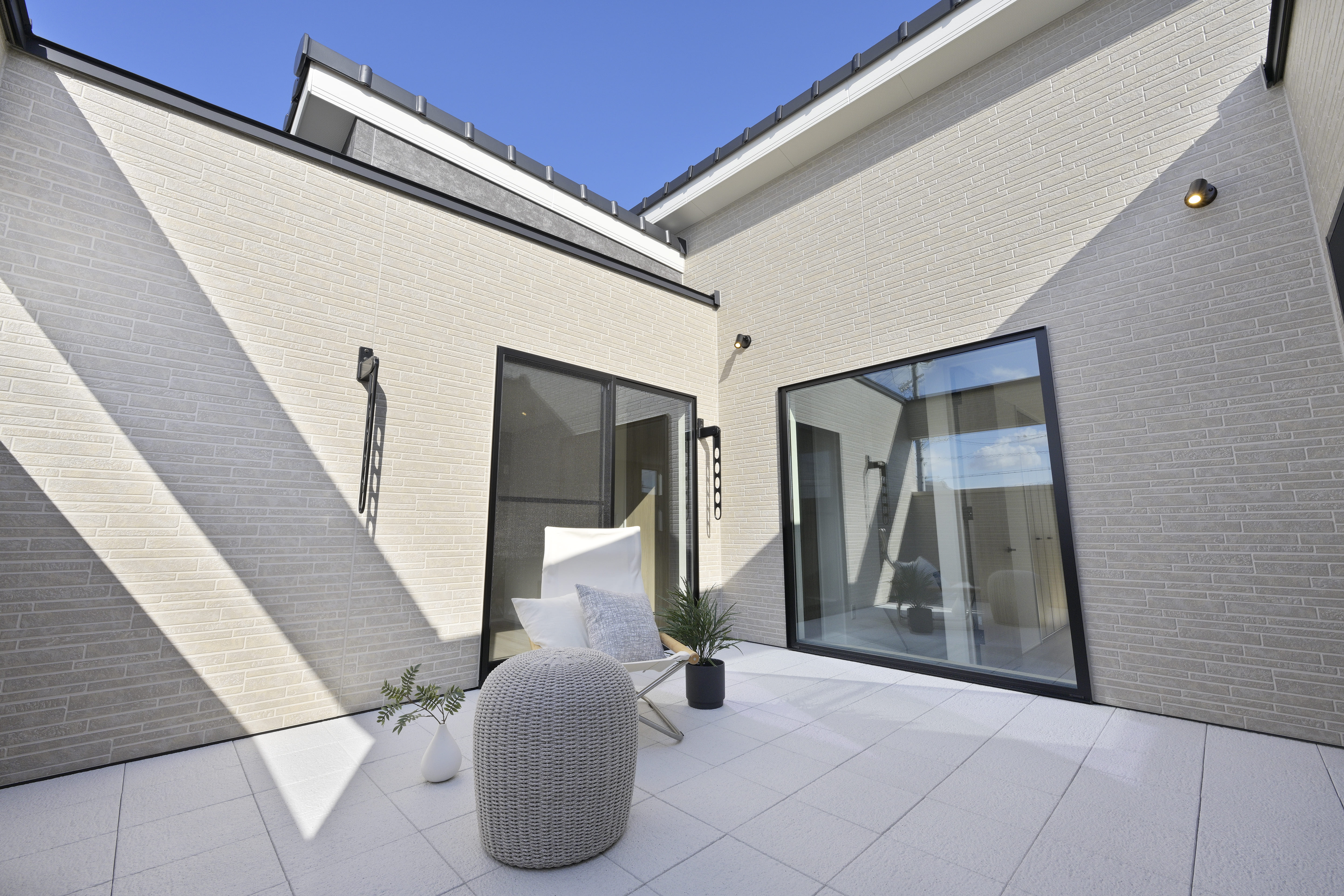統一感のあるおしゃれな外構。インナーテラスのある家