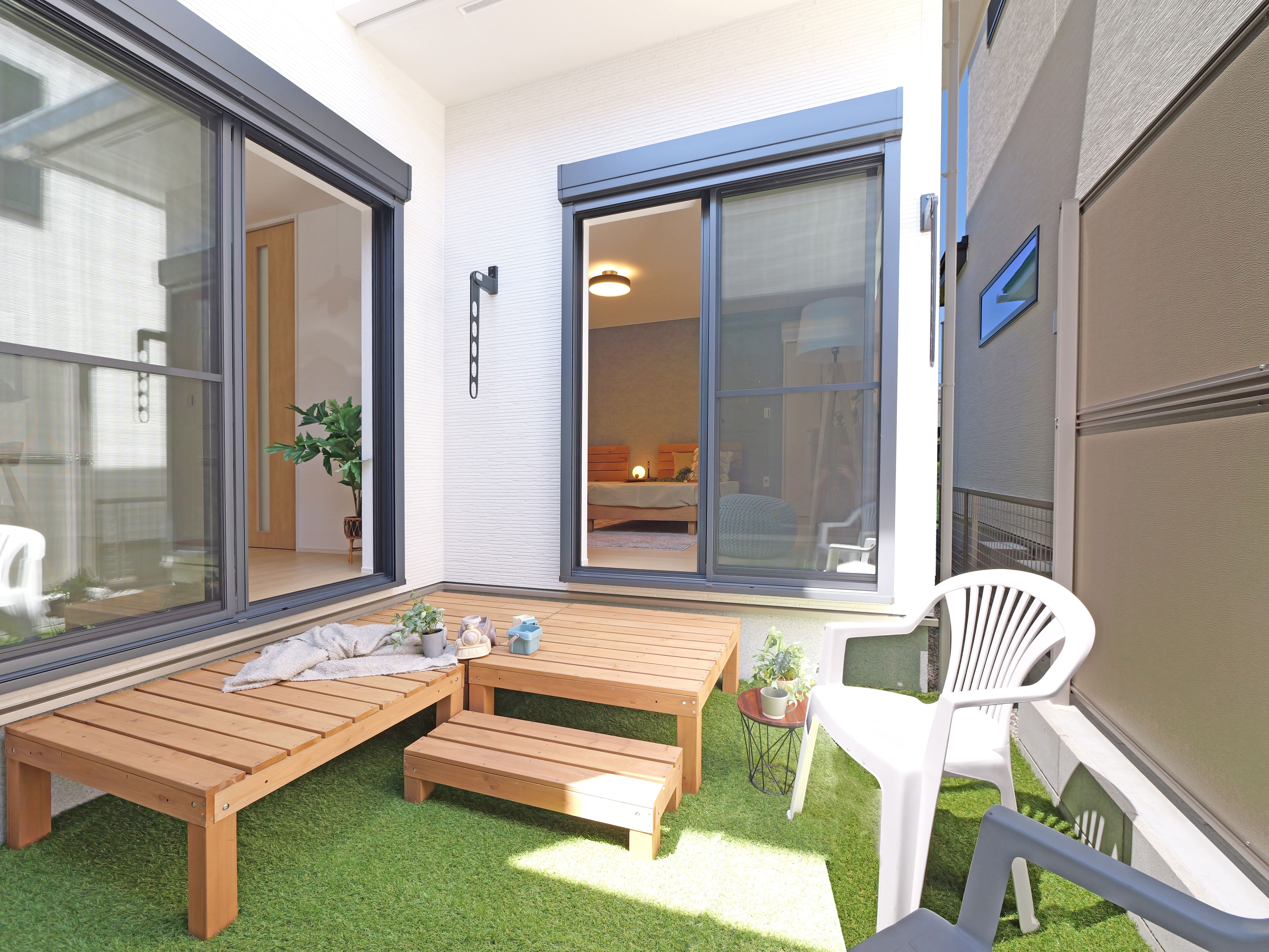 広々としたテラスとルーフバルコニーのある家