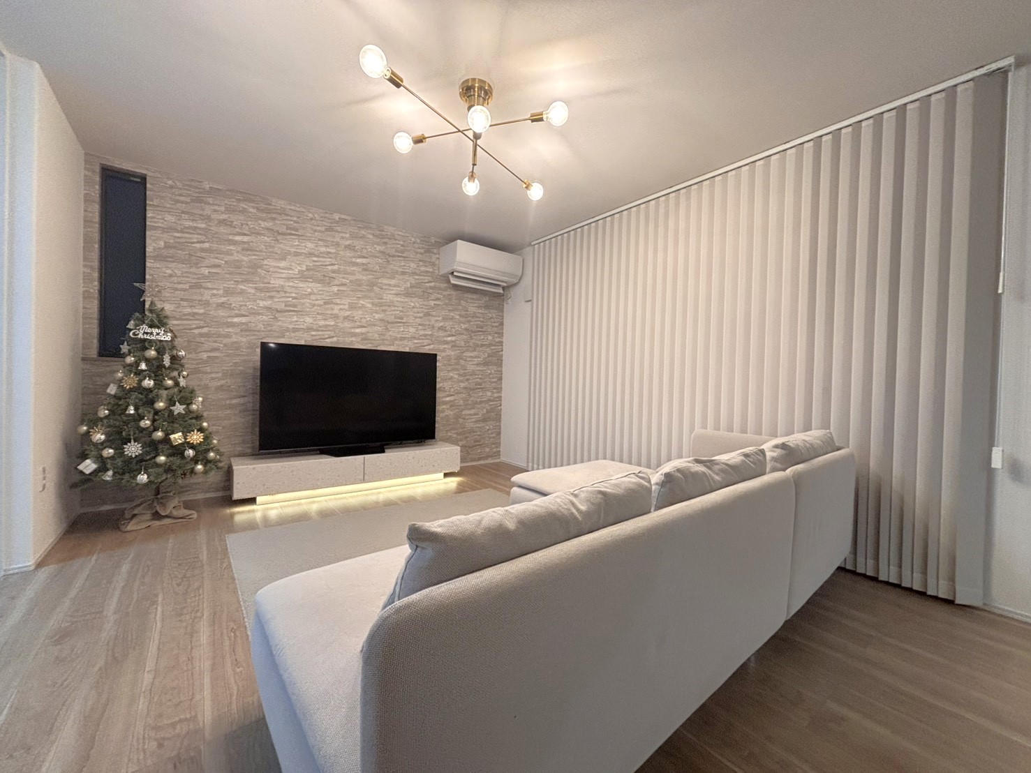 リビングは広さがしっかりあるので、好きな家具やインテリアを自由に置けるのがいいですね。壁の角が丸く仕上げられていたり、引戸がソフトクロージングになっていたり、細かい仕様が安全性を高めてくれて、子育て中でも安心です。広い空間だから、クリスマスツリーを飾れるスペースも確保できて、季節のイベントを楽しめるのも嬉しいポイントです。