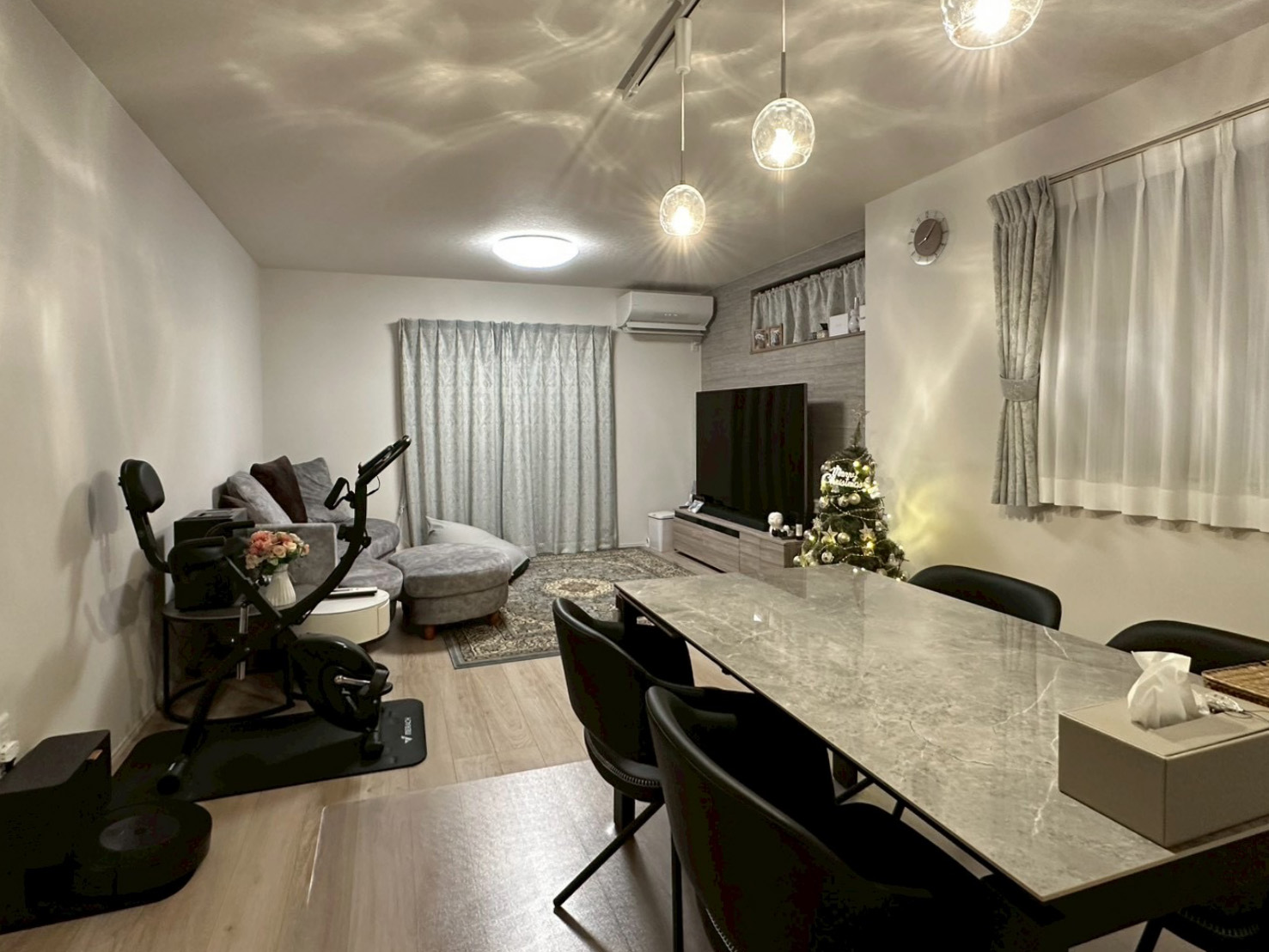 20帖あるLDKは、ソファやダイニングテーブルだけでなく、エアロバイクや空気清浄機、お掃除ロボットなどを置いても余裕があり、自分達の置きたいものを置いても、広々生活できることがお気に入りです!収納も多く、広さを無駄にしないことが嬉しいです。夫婦で映画を観ながら、ひとりはエアロバイクで運動して、もうひとりはお茶を飲みながらくつろぐ。そんな“同じ時間を共有できる瞬間”が自然と増えました。背が高い私たちにとって、ゆとりがある空間は本当にありがたくて、窮屈さとは無縁の心地よさを感じています。